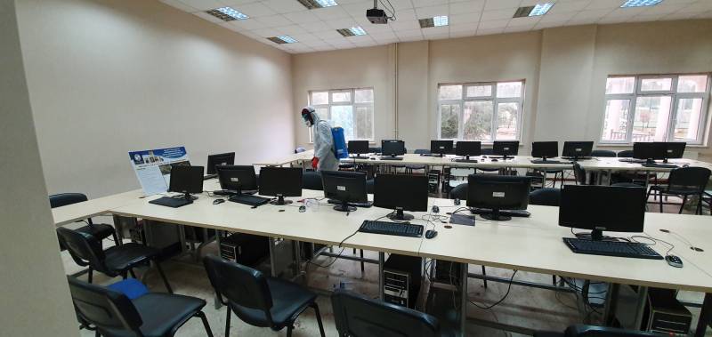 Disinfection and sterilization processes of classrooms, offices, laboratories and toilets our department were performed. Thank you to our Dear rector Prof. Dr. Fatih Savasan and dean Prof. Dr. Ahmet Alp
