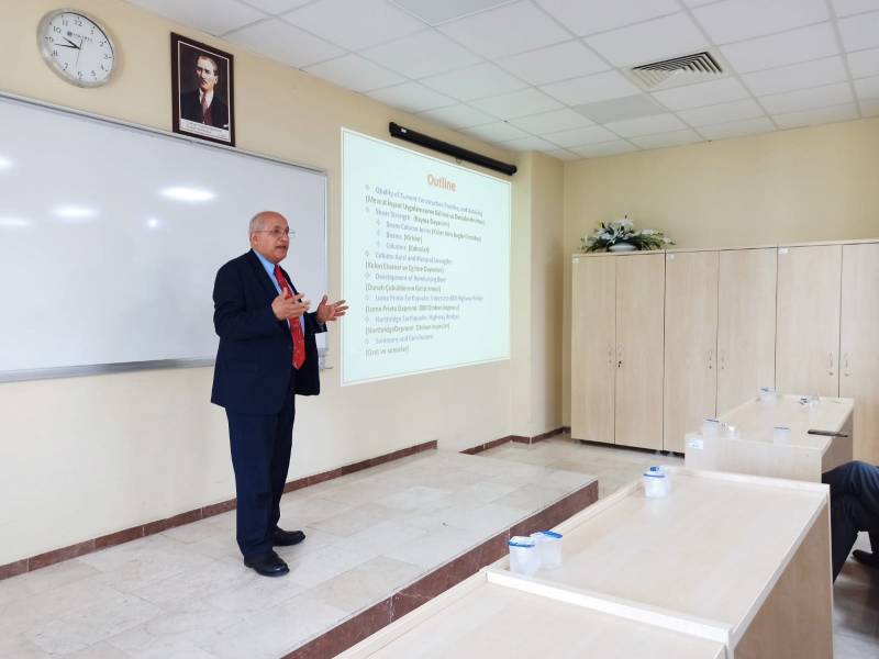 Sakarya Üniversitesi İnşaat Mühendisliği ve Afet Yönetim Uygulama ve Araştırma Merkezi'nin ortak düzenlediği seminerde Syracuse Üniversitesi İnşaat Mühendisliği Bölümü öğretim üyesi ve Mühendislik ve Bilgisayar Bilimleri Dekanı Dr. Riyad Aboutaha' yı misafir ettik.