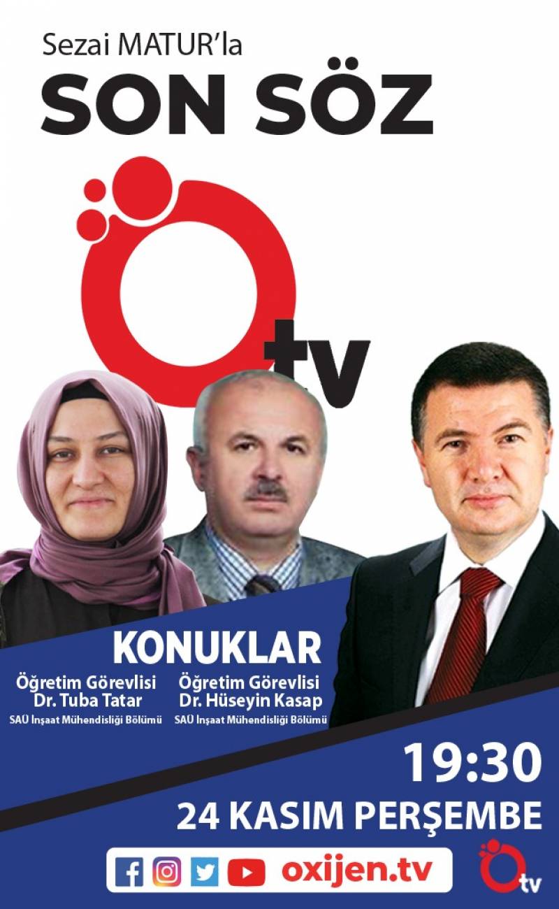 "Düzce Depremi ve Genel Deprem Değerlendirmesi" konusunun konuşulacağı Sezai MATUR'la Son Söz programı Bölümümüz öğretim üyeleri Dr. Tuba TATAR ve Dr. Öğr. Üyesi Hüseyin KASAP'ın konuk olarak katılımıyla 24 Kasım 2022 19:30'da oxijen.tv de yayınlanacaktır.